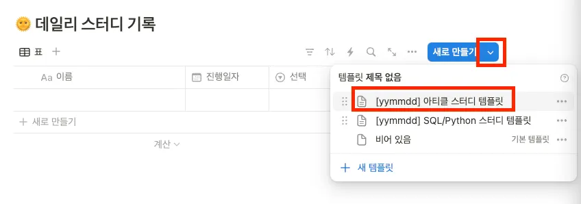 1. 팀 노션 내부에 오늘 진행할 스터디 문서를 생성해주세요.