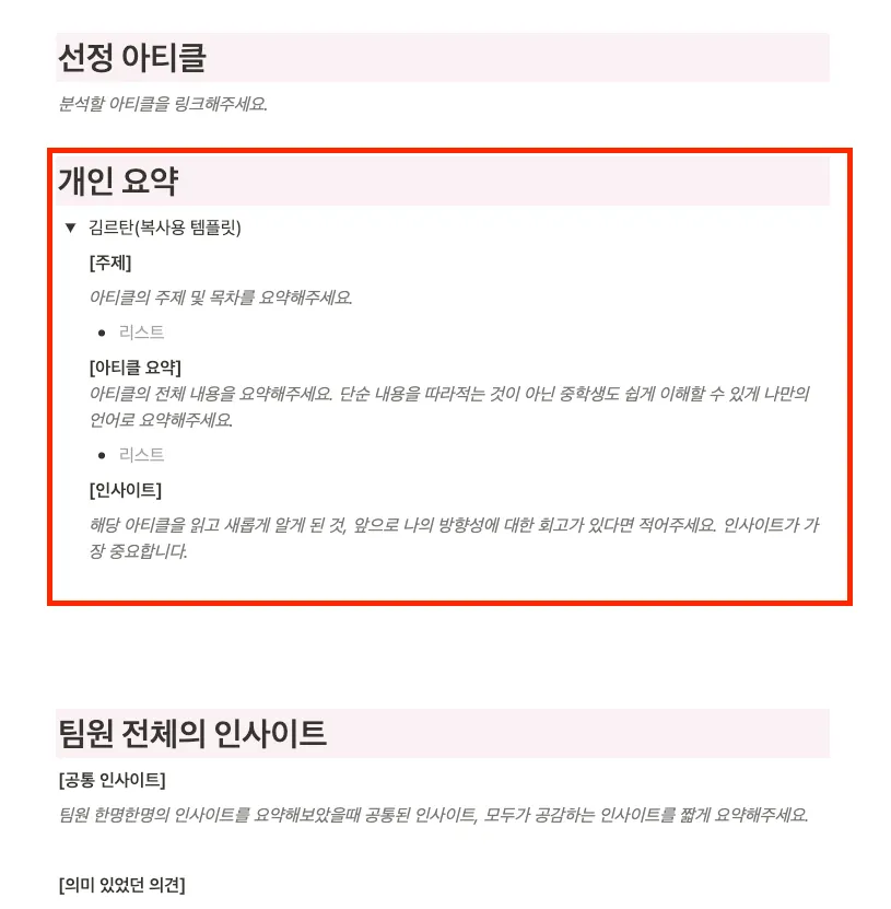3. 개인별 요약내용을 읽고 공통내용과 의미 있었던 인사이트를 공유해요.