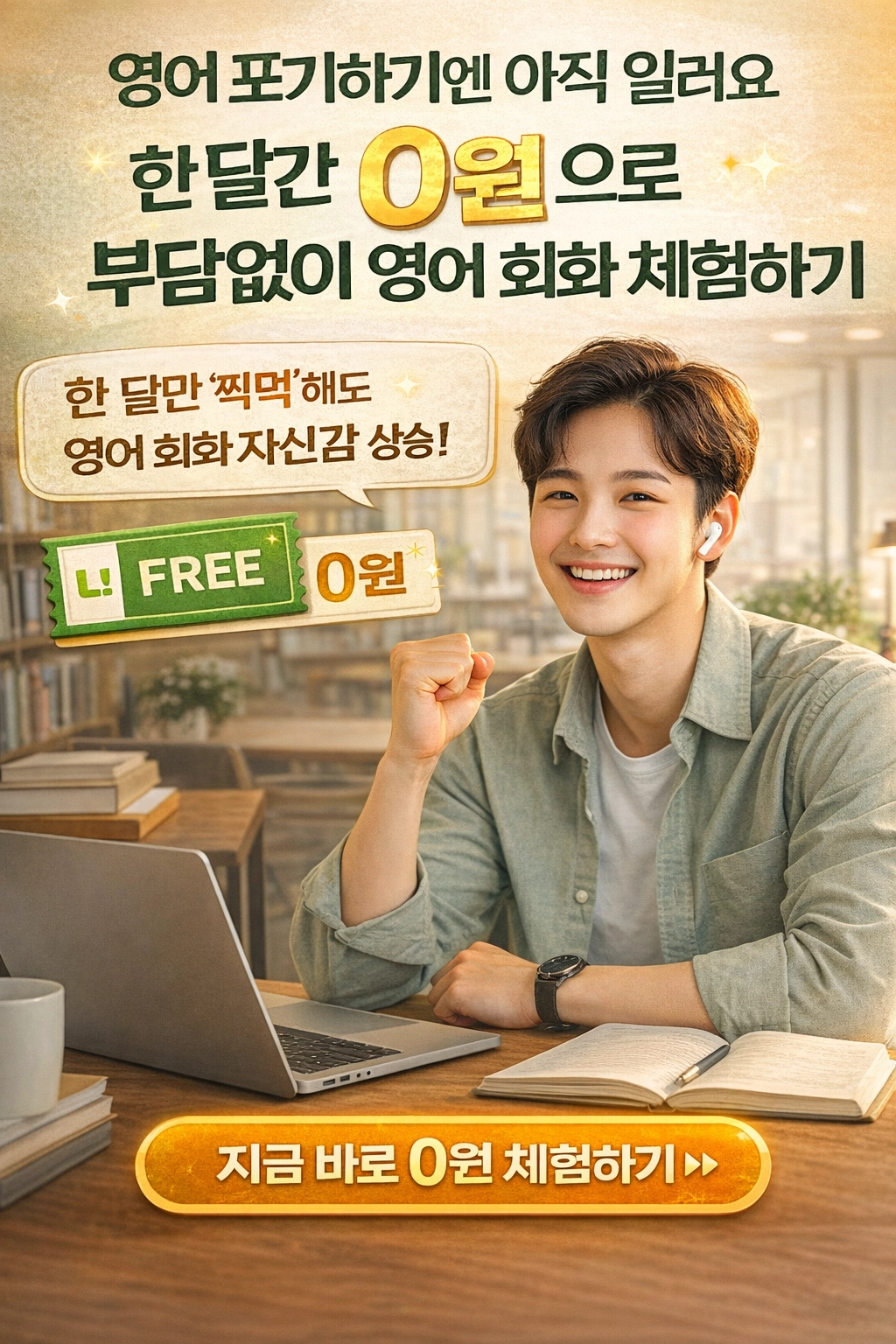 광고 핵심메시지 : 영어 포기하기엔 아직 일러요. 한 달간 0원으로 부담없이 영어 회화 체험하기. 한 달만 '찍먹'해도 영어 회화 자신감 상승!
